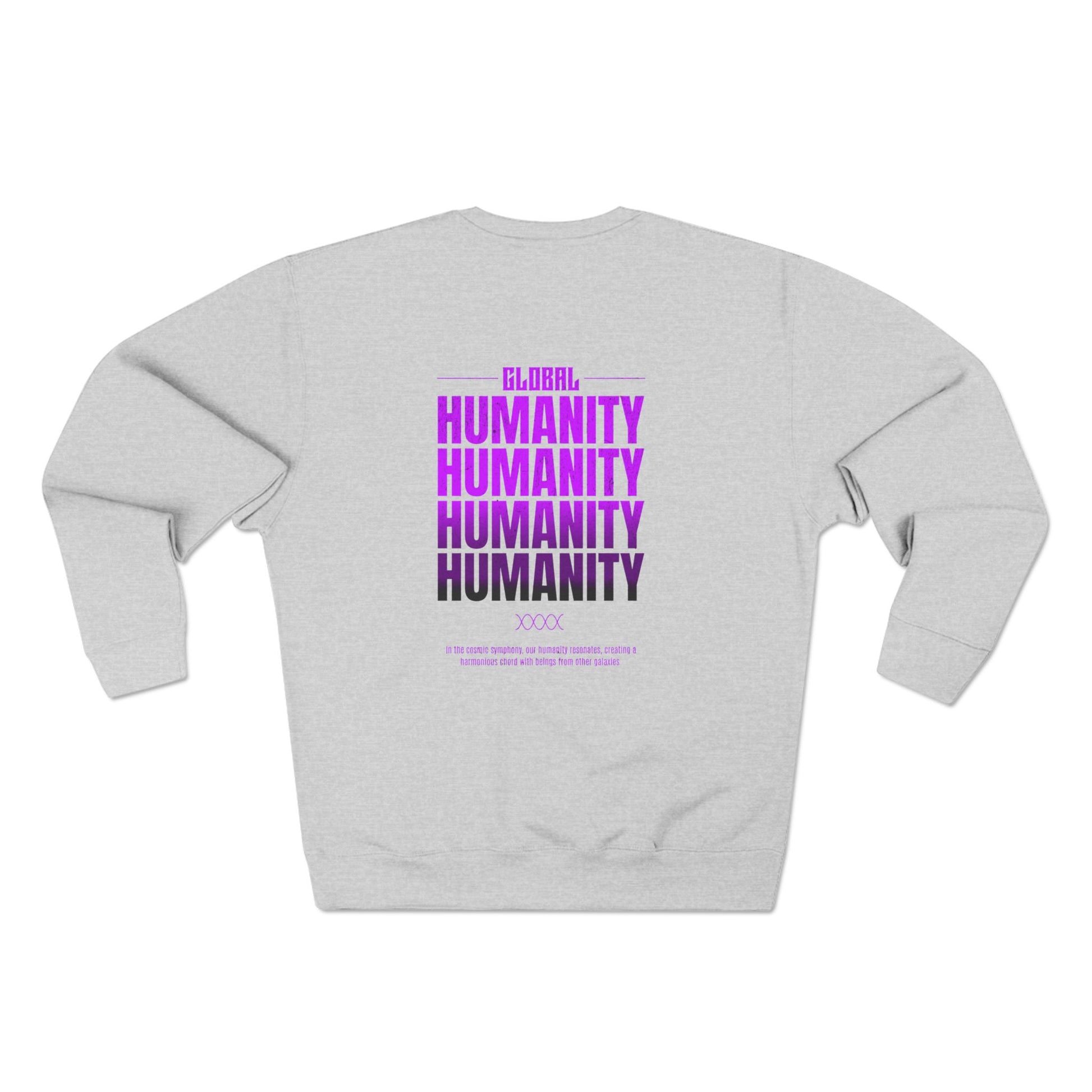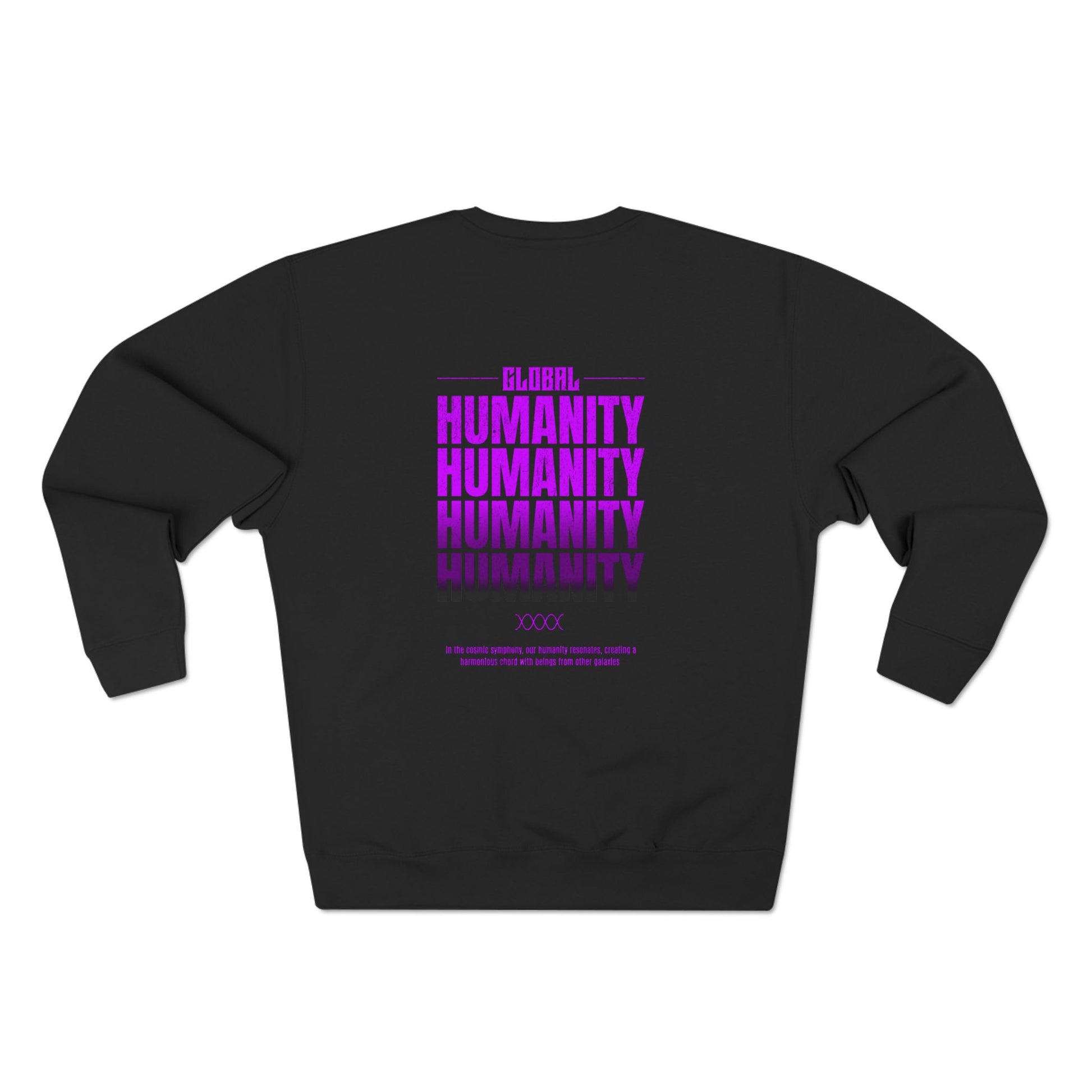 Embrace the idea of global humanity with this unisex crewneck sweatshirt featuring a design of humanity embracing Alien existence. Perfect for those interested in extraterrestrial life and mysteries of the universe. Ideal for sci-fi enthusiasts and those intrigued by outer space. Great for wearing during UFO Day celebrations or sci-fi conventions.