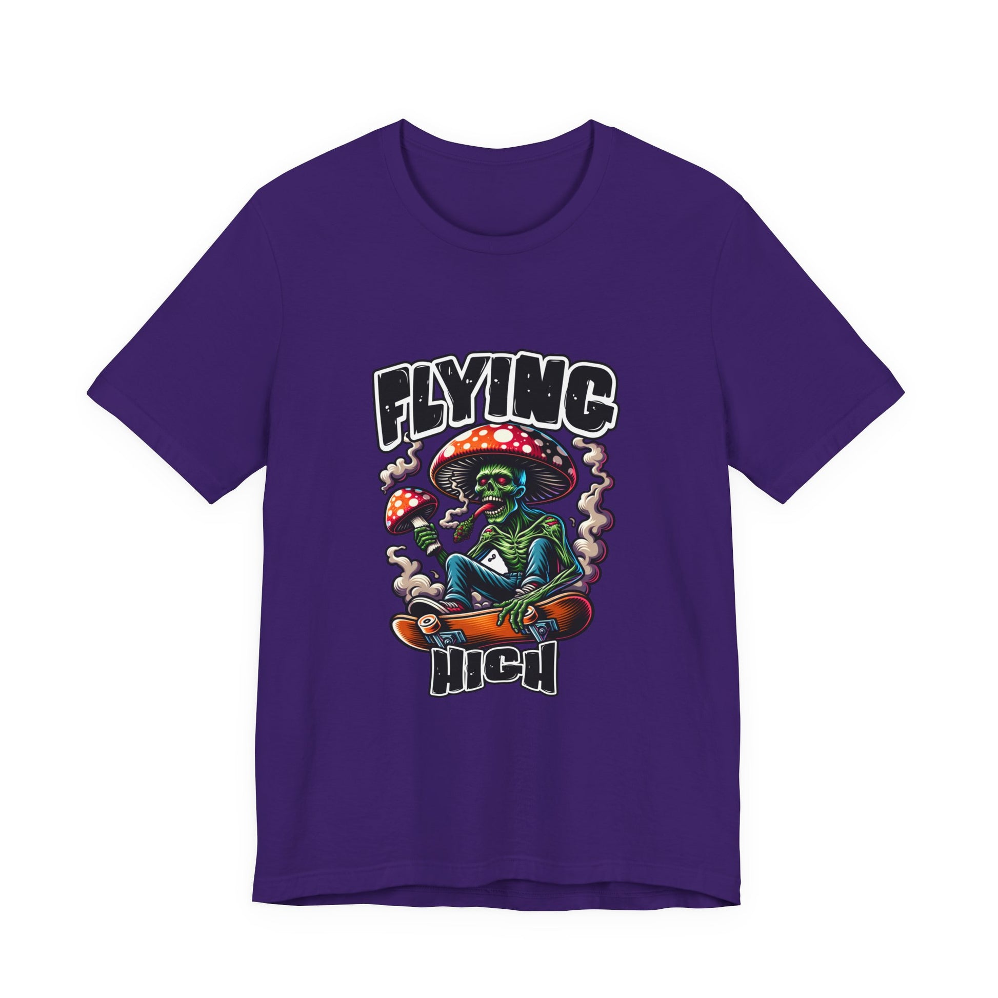 A unique T-Shirt featuring an image of an alien smoking and flying high, giving off a cool and edgy vibe. Perfect for individuals who enjoy space-themed or psychedelic designs. Ideal for casual wear, music festivals, and science fiction enthusiasts.