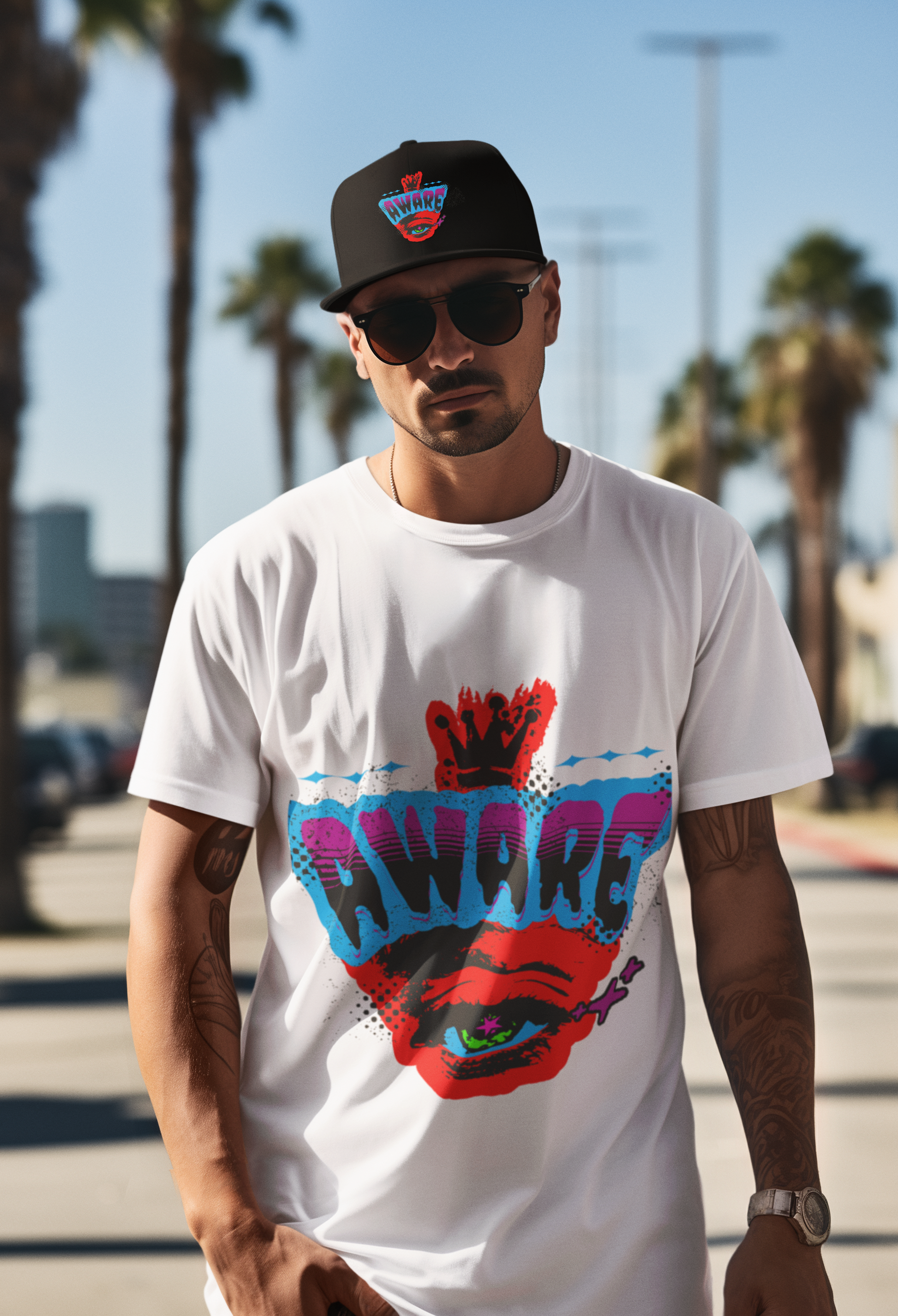 Elevate your style with our custom distressed hat featuring the All Seeing Eye and the word "Aware." Made from 100% cotton twill for comfort and durability, this hat boasts a low profile and a self-fabric hideaway strap with a metal D-ring slider for a perfect, adjustable fit. Ideal for daily wear, it's crafted with a sewn-in label and printed using Direct to Film (DTF) technology. Please note: Small details near seams may lift due to the special finishing process.