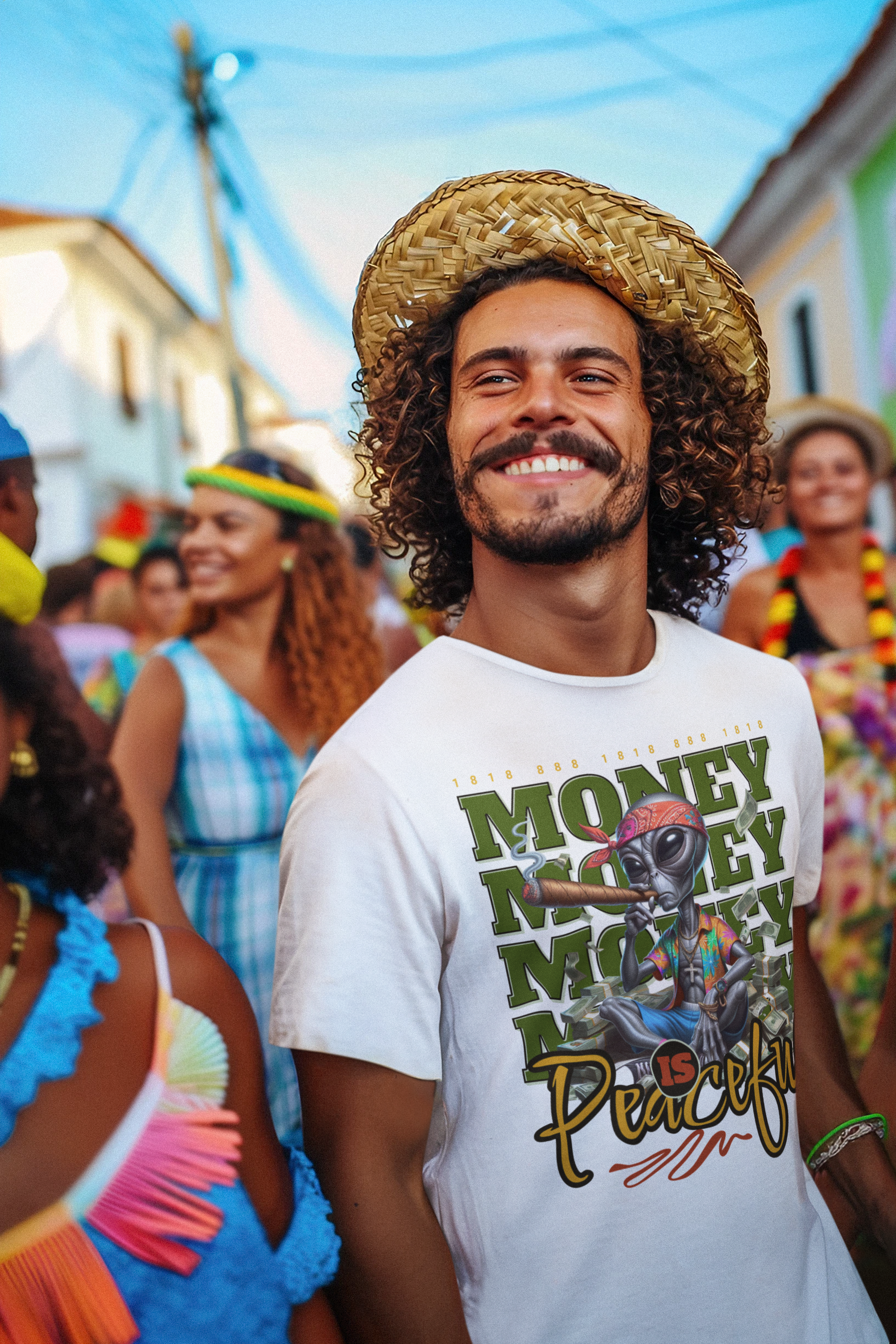 Money Peaceful Alien Smoking Tee, Extraterrestrial Graphic T-Shirt, Space Lover Gift, Unisex Graphic Tee, Peaceful Alien Tee, Alien Smoking