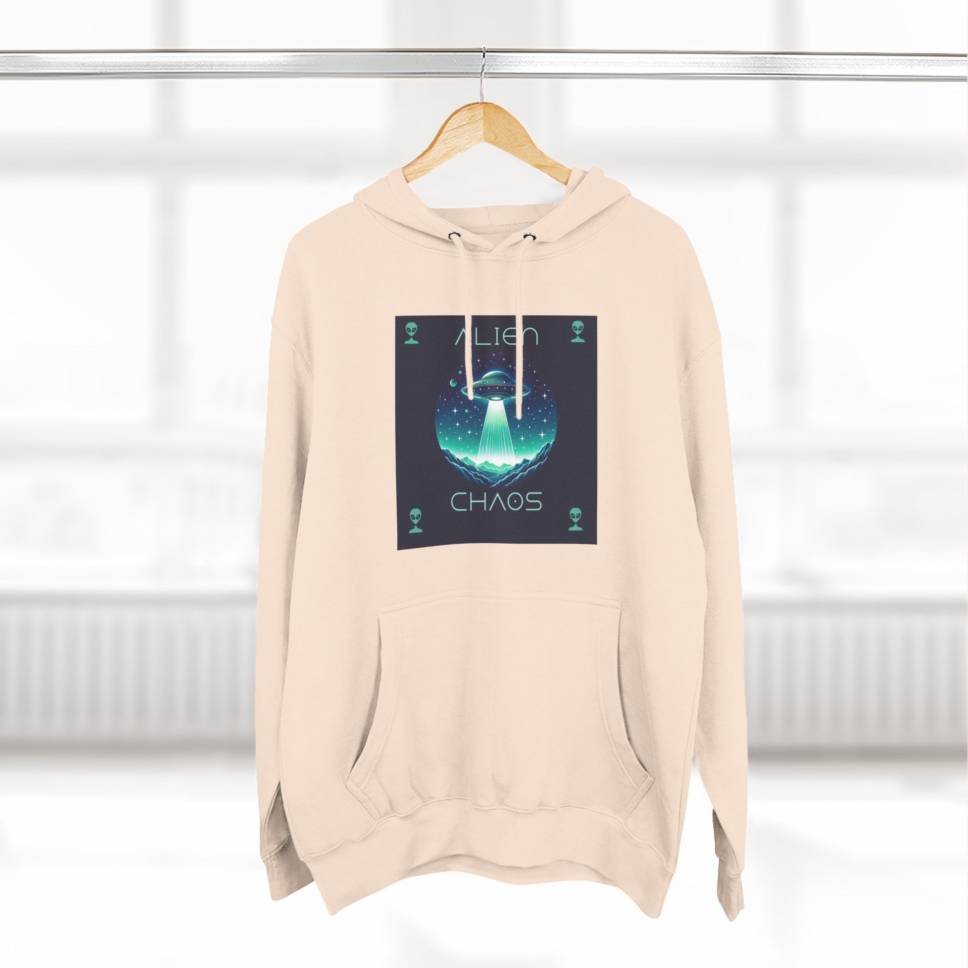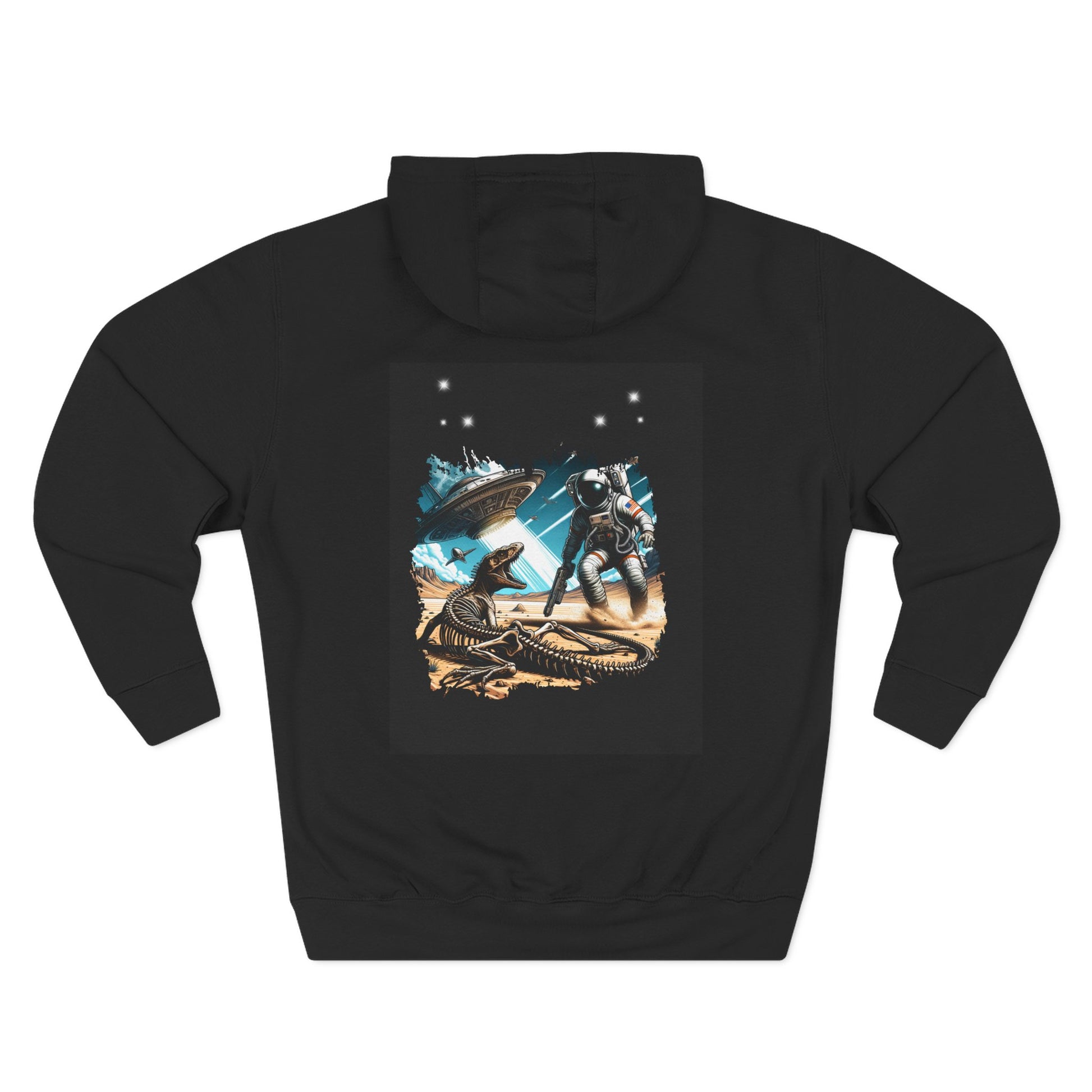 Space Battle Fleece Hoodie, Alien vs Astronaut Chaos Jacket, Outer Space War Sweatshirt, Galaxy Combat Pullover, Sci-Fi Fight Hooded Top