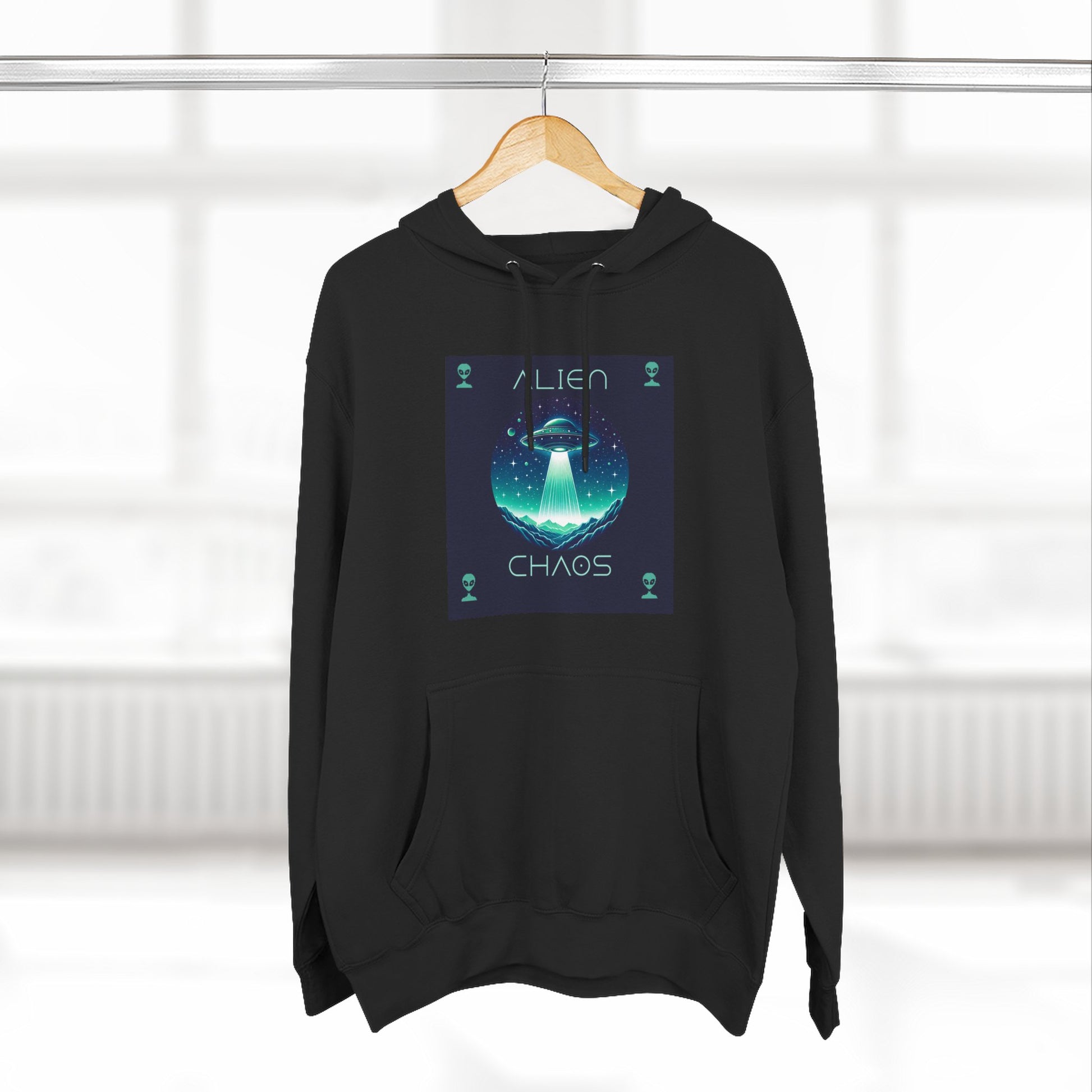 This three-panel fleece hoodie features a design of an Alien battling an Astronaut in chaos, giving off a mysterious and adventurous vibe. Perfect for those who love sci-fi and space-themed artwork, this hoodie is ideal for casual wear or as a statement piece during sci-fi conventions or cosplay events.
